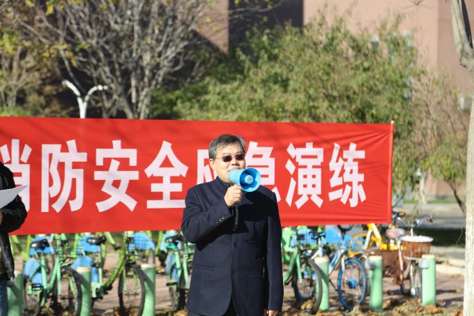 在疏散集合地,孙月海书记代表机械学院发表讲话,感谢各部门领导以及中航物业的大力支持,中心对此次活动十分重视,做了非常充分的准备。安全是一切的前提,对于学校、每一个家庭都是天大的事儿,同学们都要牢固树立安全意识,严格按照要求,规范自身的行为。