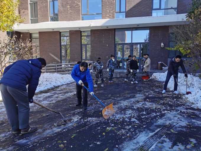 参加清雪的师生能够主动担当,克服严寒,用实际行展现党史学习教育的成果。