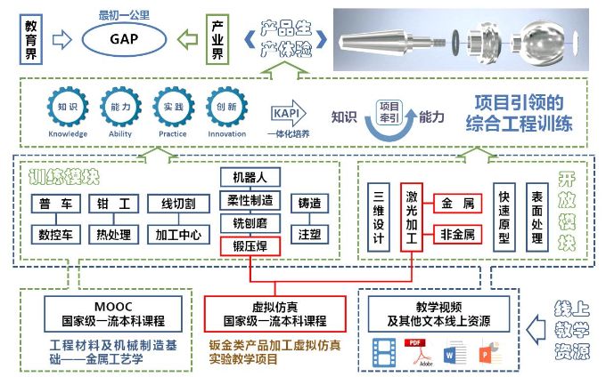 一、课程以项目制为牵引,将线上线下的教学模式,虚实结合的教学手断融入工程训练课程,从被动学习模式转为主动学习模式。以产品为主线,工艺路线为牵引,增加设计环节,突出在产品制造中的作用,考察学生知识运用和解决问题的能力(图1)。