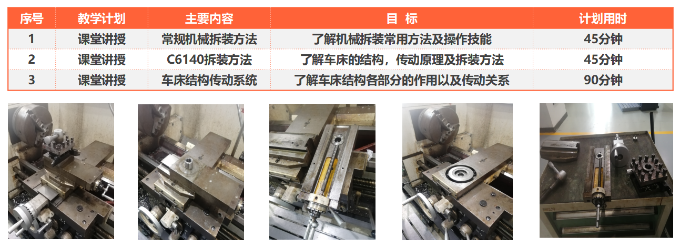 5 机床拆装项目:了解机器组成与制造方法,机床的结构及连接方式、 提高工程识图能力、熟悉拆装的概念及部件的拆装方法;掌握钳工装配工具的使用方法(图8)。