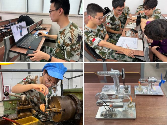 斯特林发动机项目是一项具有强专业背景的教学实践项目。该项目教在传统实训教学内容的基础上,进行知识外延和工艺拓展,与专业知识对接,要求学生学习运用能量转化原理、三维建模软件,从原理到样机,在查阅资料基础上学习设计斯特林发动机机械结构,完成加工工艺编制、零件加工精度控制、零部件的装配与调试、理解误差控制在机械产品意义及装配在产品性能实现中作用,实现工程训练与专业学习的对接。