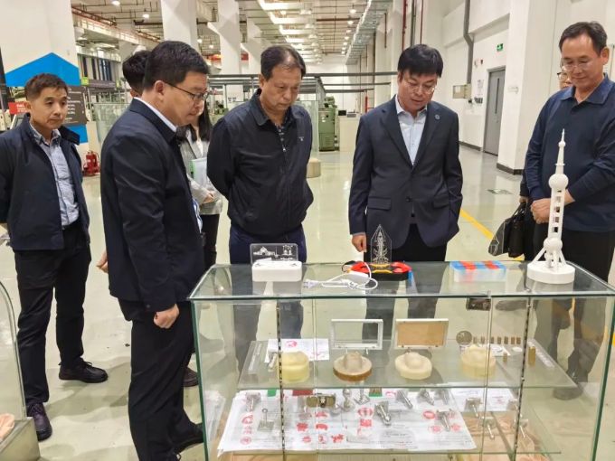 在铸造教学区,金东寒在“基于CDIO理念的多层次模块化铸造教学”展牌前,了解铸造教学情况,对中心将三维造型、3D打印和激光加工技术融入铸造教学,并增加精密铸造项目,打造集专业教育、劳动教育、思政教育于一体实践教学内容表示认可。他指出,现代科技发展迅速,中心要把加工对象扩展到非金属上,满足新产品、新技术发展需要。
